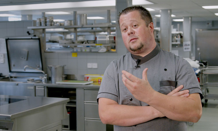 Marcel Wüest règne sur les fourneaux de l’EMS de Zofingue depuis vingt ans. En ce moment, son équipe et lui préparent 500-600 repas par jour, pour les résident(e)s, mais aussi pour la clientèle externe et les écoles à horaires continus de la ville.